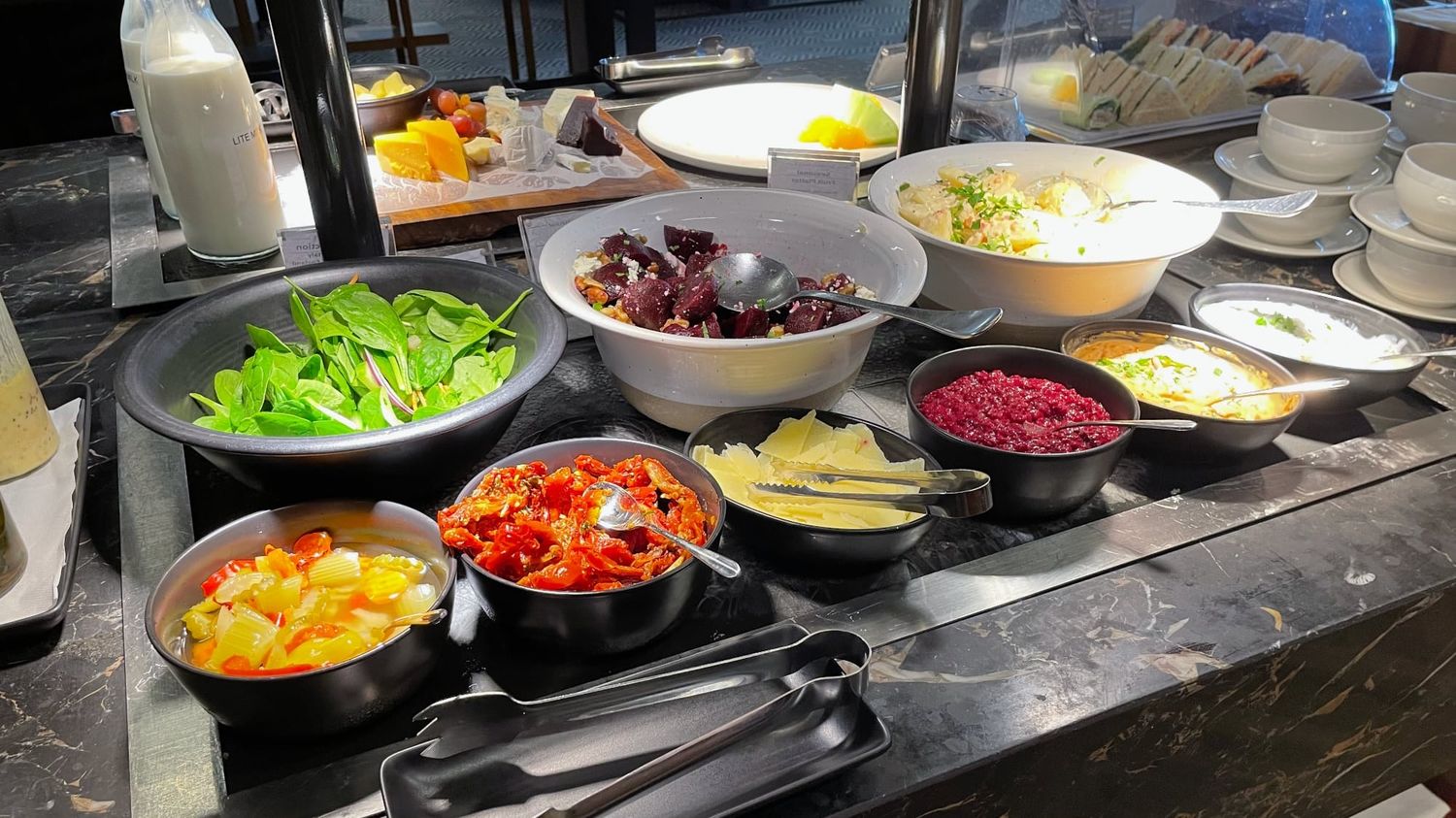 We also rate the extensive selection of salads, dips and cheeses as better for light snacking than at the neighbouring AirNZ lounge.