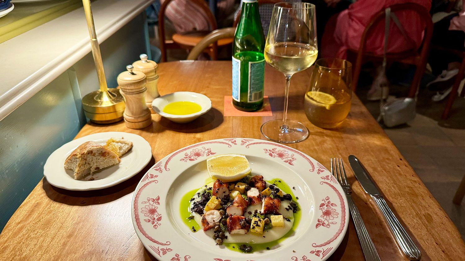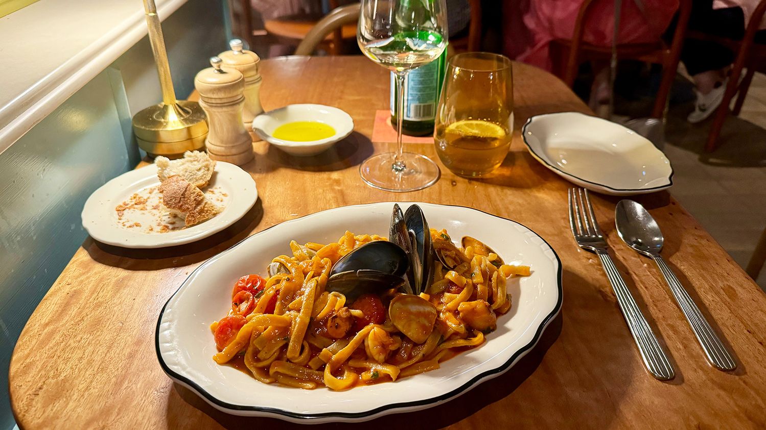 Both dishes delivered a delightful flavour hit – lemon drizzled over the octopus helped cut through the rich potato and pesto, while the pasta was laden with succulent mussels and clams, plus a few chillies for good measure.
