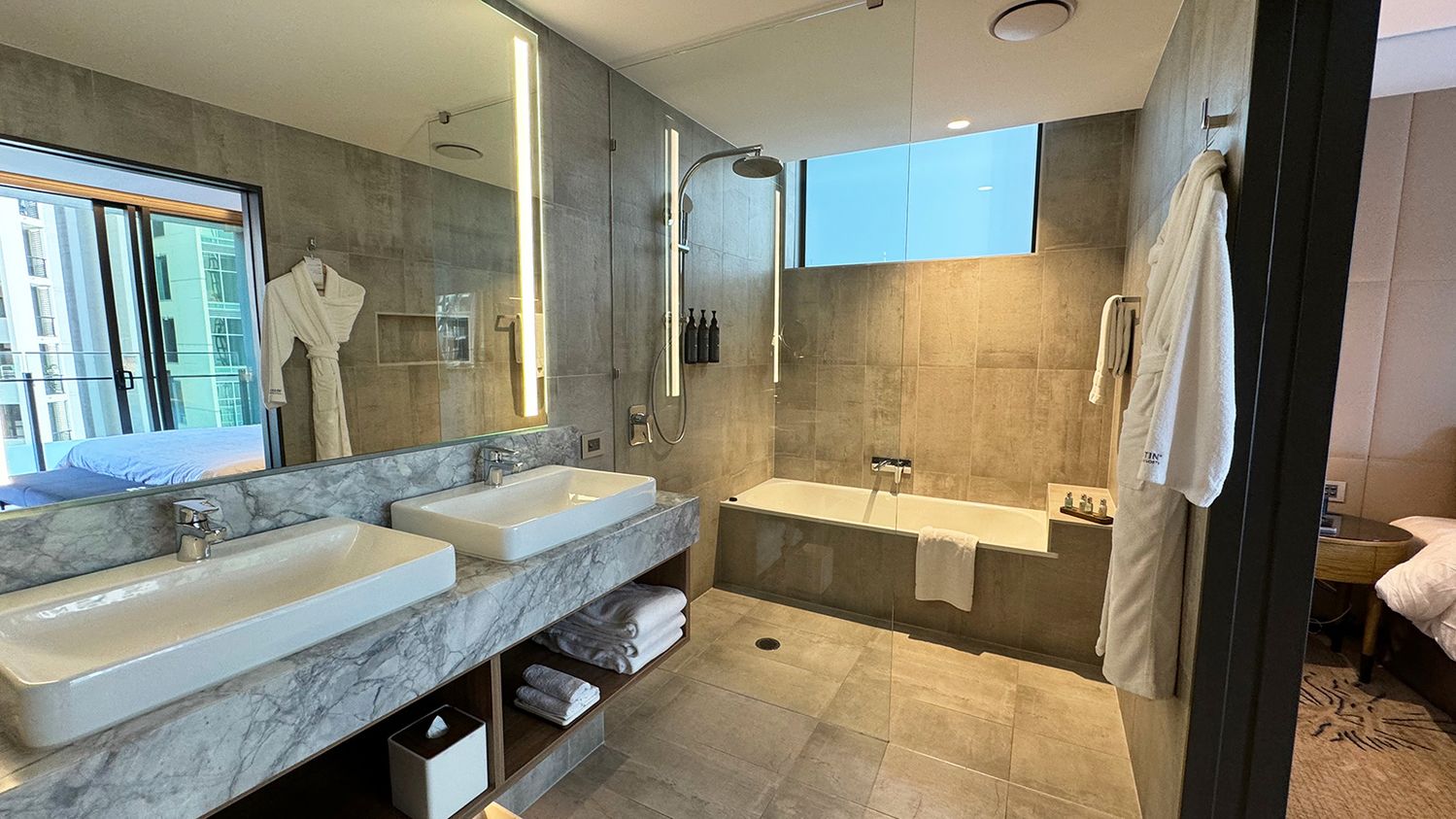 The Westin Brisbane features 298 rooms and suites. My key unlocked a Renewal Suite on level 12, complete with a separate living and dining room, king-size bed and huge bathroom.