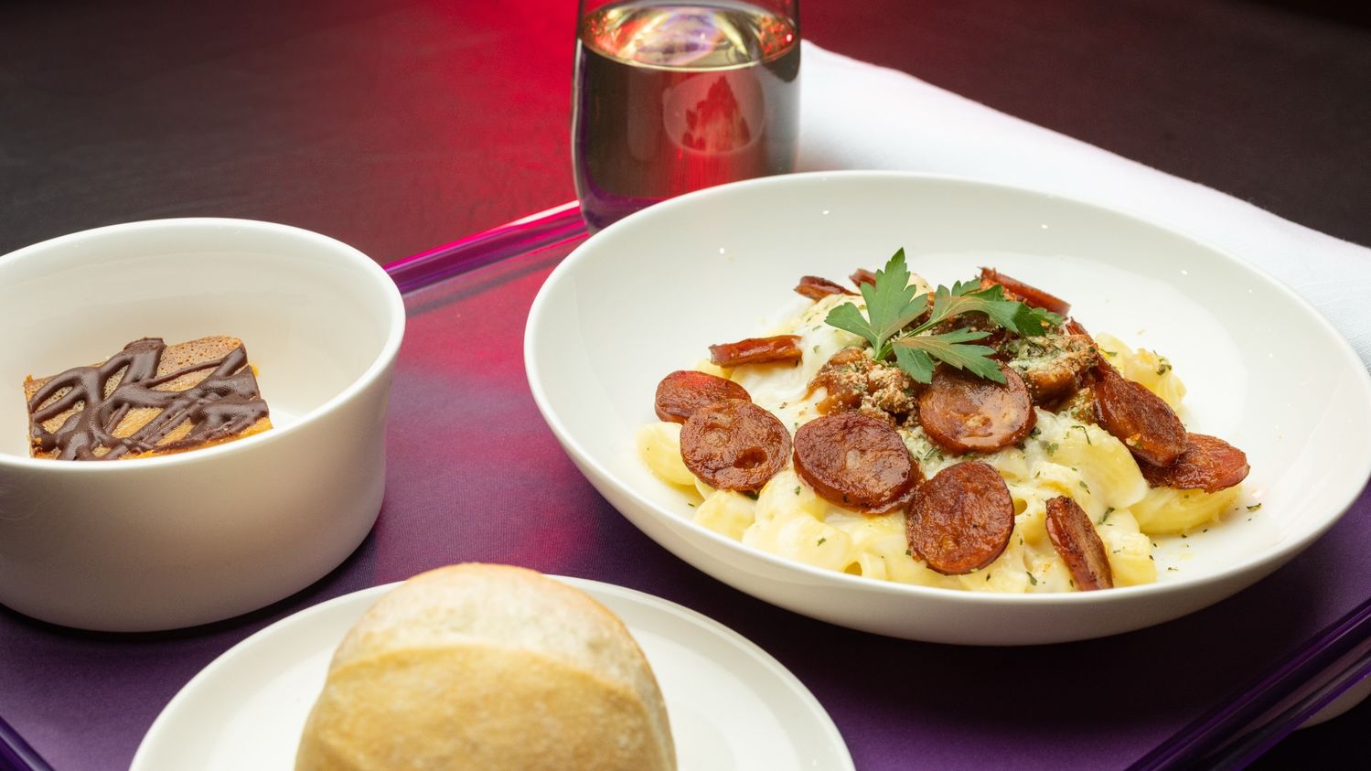 Taking flight from Wednesday November 20, these business class mains are complemented by indulgent treats such as a passionfruit & mango pancake stack, white chocolate and macadamia cake, and salted caramel slice.